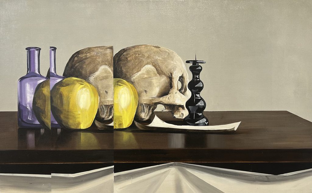 本展で発表される静物画には、人骨や漂流ゴミ、使い古された日用品などがテーブルの上に置かれ、死や時間の儚さを静かに想起させる。そこには、中世西洋美術の「ヴァニタス」を思わせる寓意性が漂うが、伊藤自身はその美術史的な概念や文脈を意識することなく、あくまで油彩という古典的技法を用いながら、現代の日常にあるモチーフを描いてきた。その結果として立ち現れているのは、過去の形式をなぞるものではなく、現代において新たに更新された静物画の姿である。