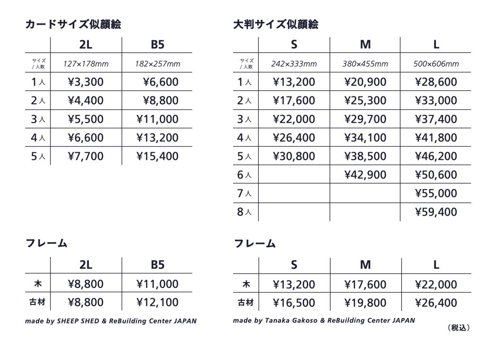 *サイズや人数で値段が異なります。詳しくは以下料金表をご確認ください。